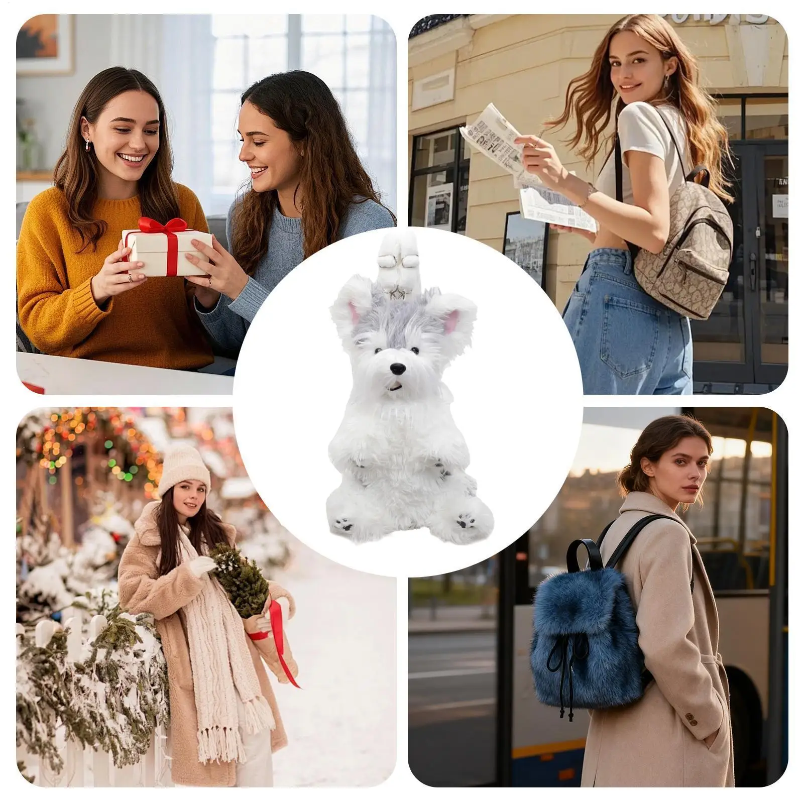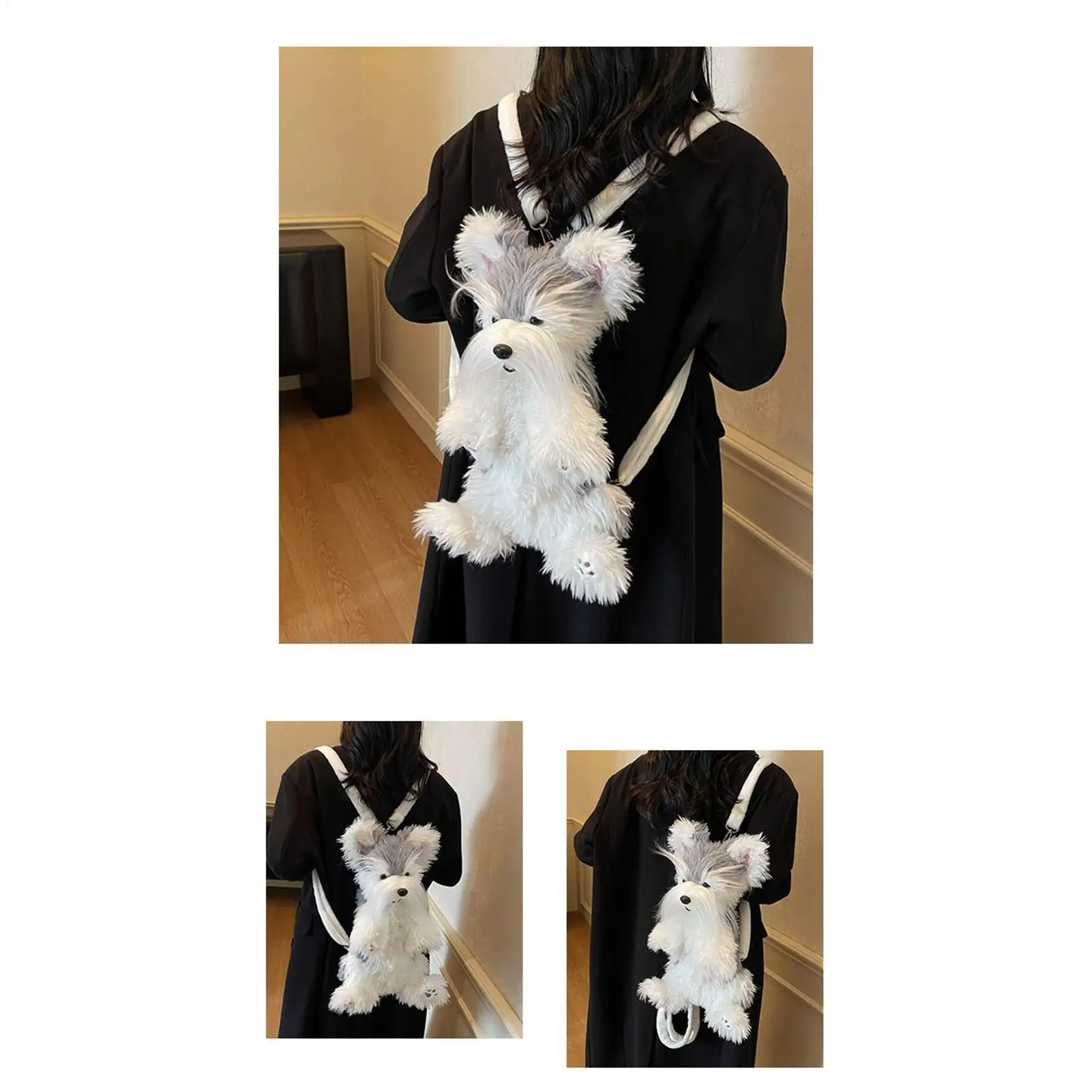 1.Unique Plush Appeal: The plush backpack combines long shaggy artistry with a soft plush texture, creating a standout accessory for everyday use. With its charming schnauzer-inspired design, it enhances casual ensembles and suits various settings such as picnics or urban explorations